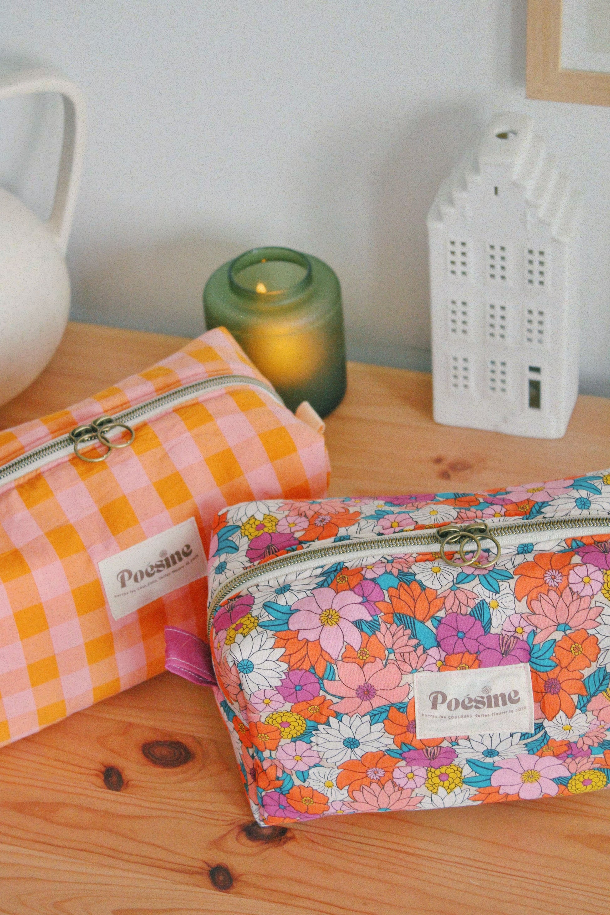 Avec ses lignes simples et ses finitions soignées, le coffret Pause dorée réunit deux essentiels cosy : un chouchou et une trousse de toilette confectionnés à la main dans des tissus de qualité